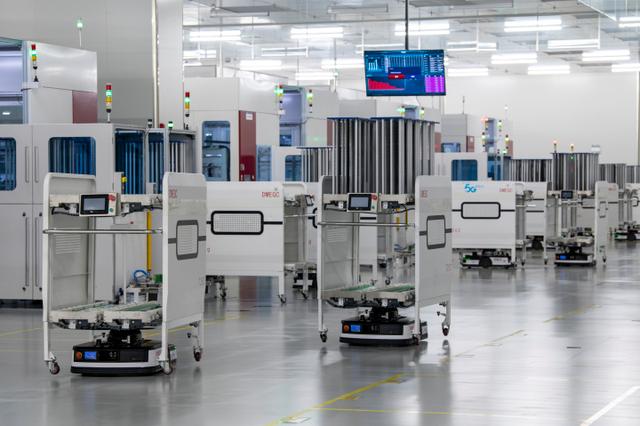 4月27日,东阳市横店东磁太阳能电池片未来工厂里,自动化机械手臂在工作,实现5G专网应用智能化生产。共享联盟·金华 胡肖飞 摄