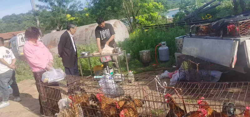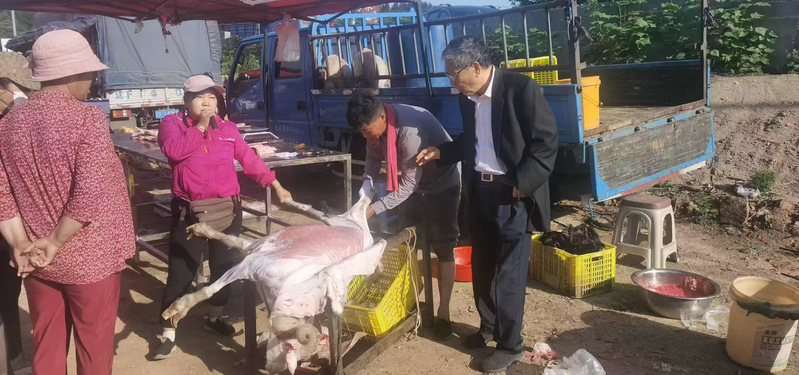 再往里进,发现正现场宰羊:男人屠宰,女人话筒吆喝:每斤35元(图8)。