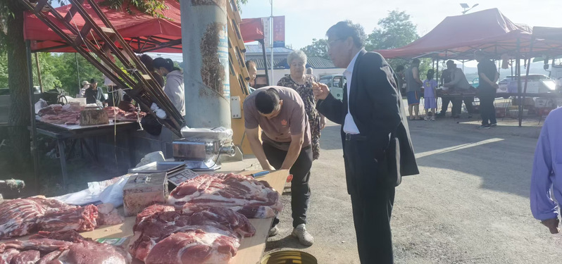 早晨5点钟,上早市,看当地集市及物价走势。入市第一摊,标价:五花肉每斤15元(图7)
