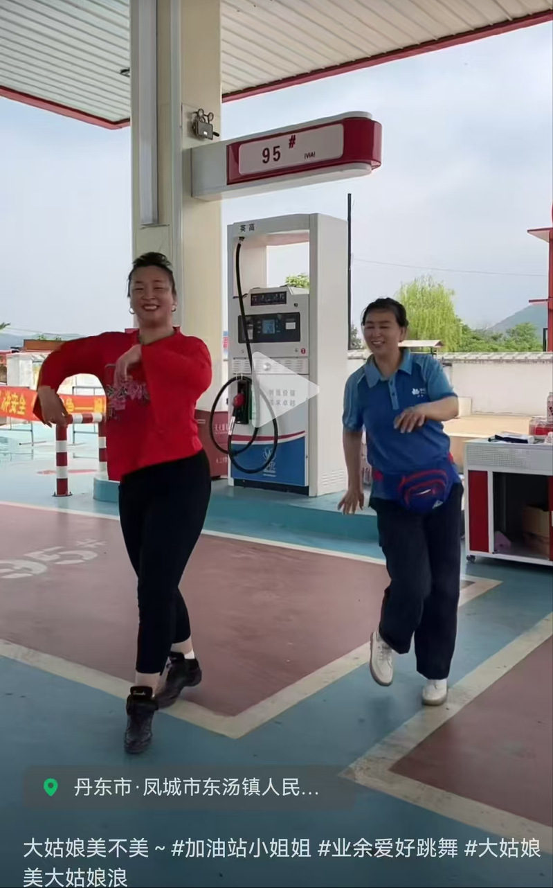 回味昨晚一新鲜事:见网上视频,在凤城东汤“圣泉加油站”,两位加油站美女网红载歌载舞《大姑娘美》(图23)。当时,加油时我保存此加油站支付凭证(系“中化”收购民企),再看视频,很有乐趣。