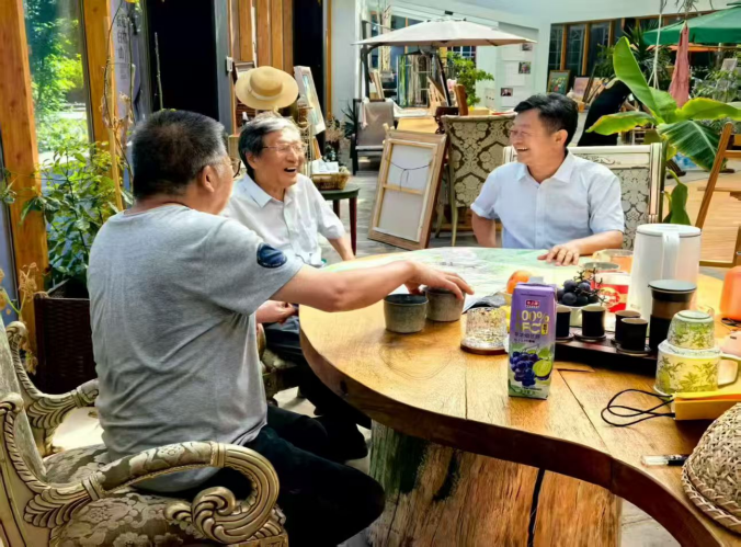 7月26日,今年第1批来访朋友——南开校友吕国平博士(右)从深圳北上来此。南开校友、吉大经院教授陈立峰博士(左)带领相聚。看!三人交谈多开心。