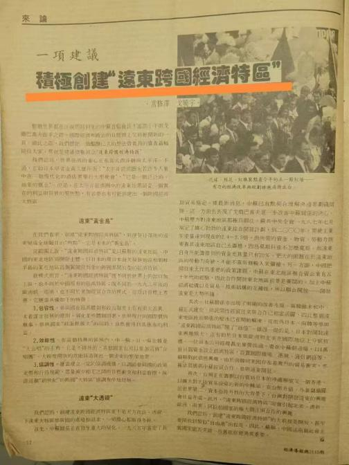 (四)能提供您在“考察小记”提到的三十六年前发表的《积极创建“远东跨国经济特区”》的建言文章吗?