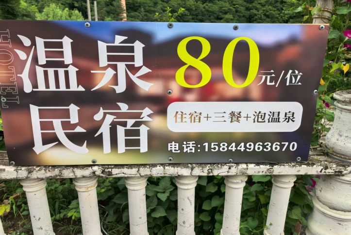 后调研得知:旁边有个“小河边民宿”,乃煤矿疗养院“看水泵”职工唐师傅(已退休)承包,儿媳为法人代表。包括住宿+三餐+泡温泉,每天才80元,人车爆满(图7)。