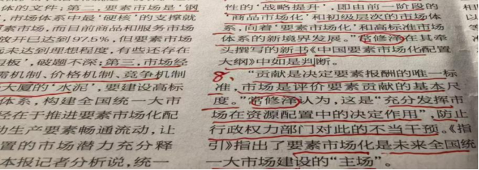 例如,土地、技术的市场化程度较低;数据要素的产权问题,有的已破题,有的尚未完全破题,如“人脸识别”数据的产权界定和产权交易等;至于“管理要素”(企业家要素),虽然中央已经列入“七要素”之中,但是我们的文件、报告、讲话等,对此仍然采取回避态度,以至于至今“管理要素”(企业家市场)处于“缺位”状态,这是“不可或缺”的。基于此,我在书中专门写了第十章:强调“不可或缺的”管理要素(企业家市场)。总之,这些“短板”必须补上。