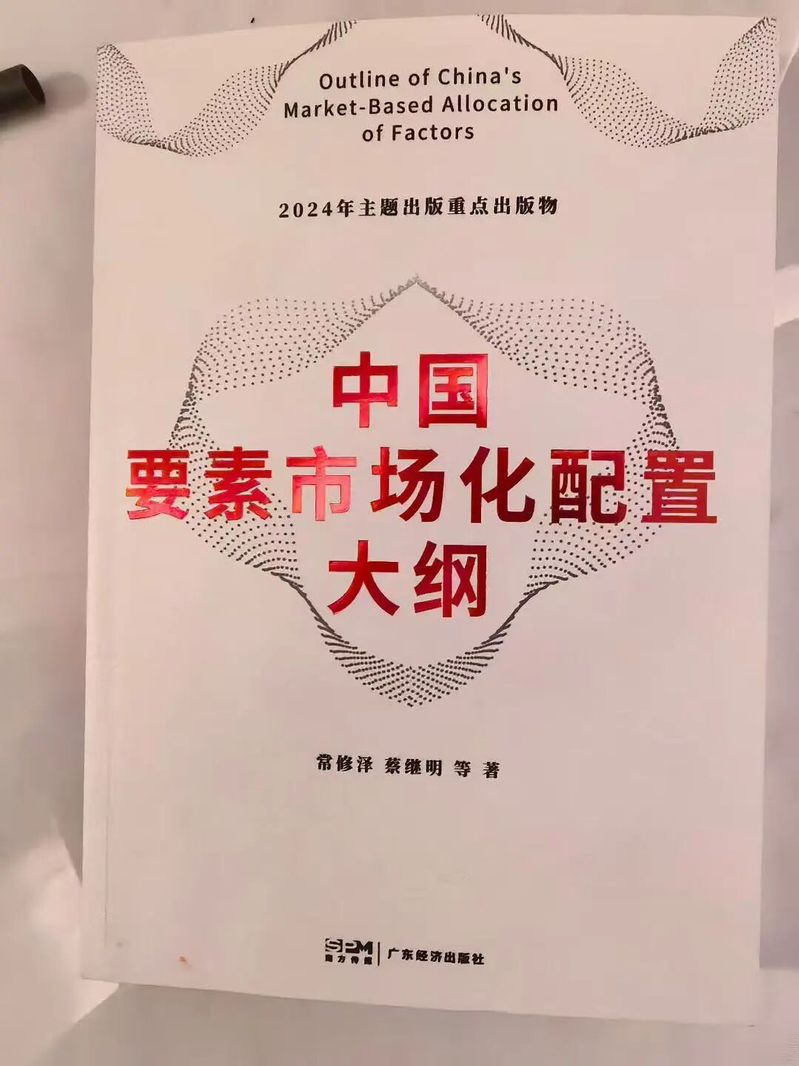 图7.19日在大会讲完自己的“十五五思路”后,把新著《中国要素市场化配置大纲》赠给市委,提议“用新思维运作”。