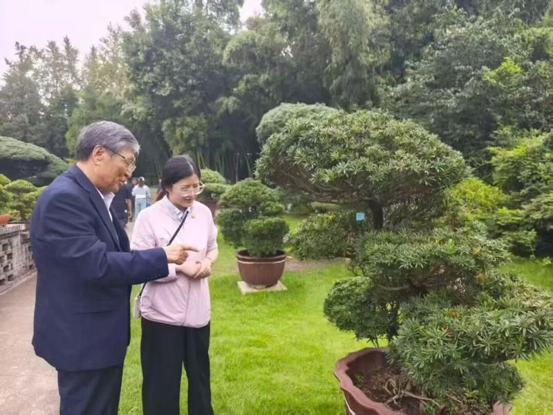如皋碧水环绕,绿树成荫(见图3,我在水边和树丛照),城市绿化覆盖率达43.72%。尤其是被称为“中国花木盆景之都”(见图4,欣赏稀有盆景)。